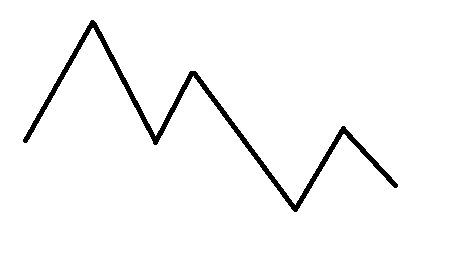 Triangles Desc. aşağı doğru gittikçe küçülen tepelerden oluşan bir düşüş formasyonudur. Formasyonun tabanını oluşturan dip noktalarının birbirine yakın olması önemlidir. Tepeler birleştirildiğinde oluşan doğruya formasyon içinde temaslar, küçük taşmalar olabilir. Tabanı ve tepeleri birleştiren çizgiler kesiştirildiğinde bir üçgen oluşur. Formasyonun devamlılığı için değerlerin bu üçgen içerisinde kalması gereklidir. Değerler formasyon tabanından aşağı düştüğü zaman, değerlerin formasyon boyu kadar düşmesi beklenir.