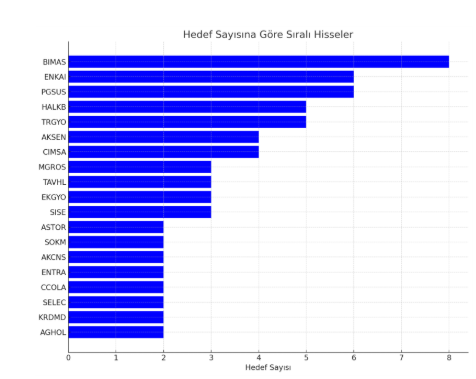 Aracı kurumların son bir aydır en çok sayıda hedef fiyat verdiği hisse senetleri belli oldu.